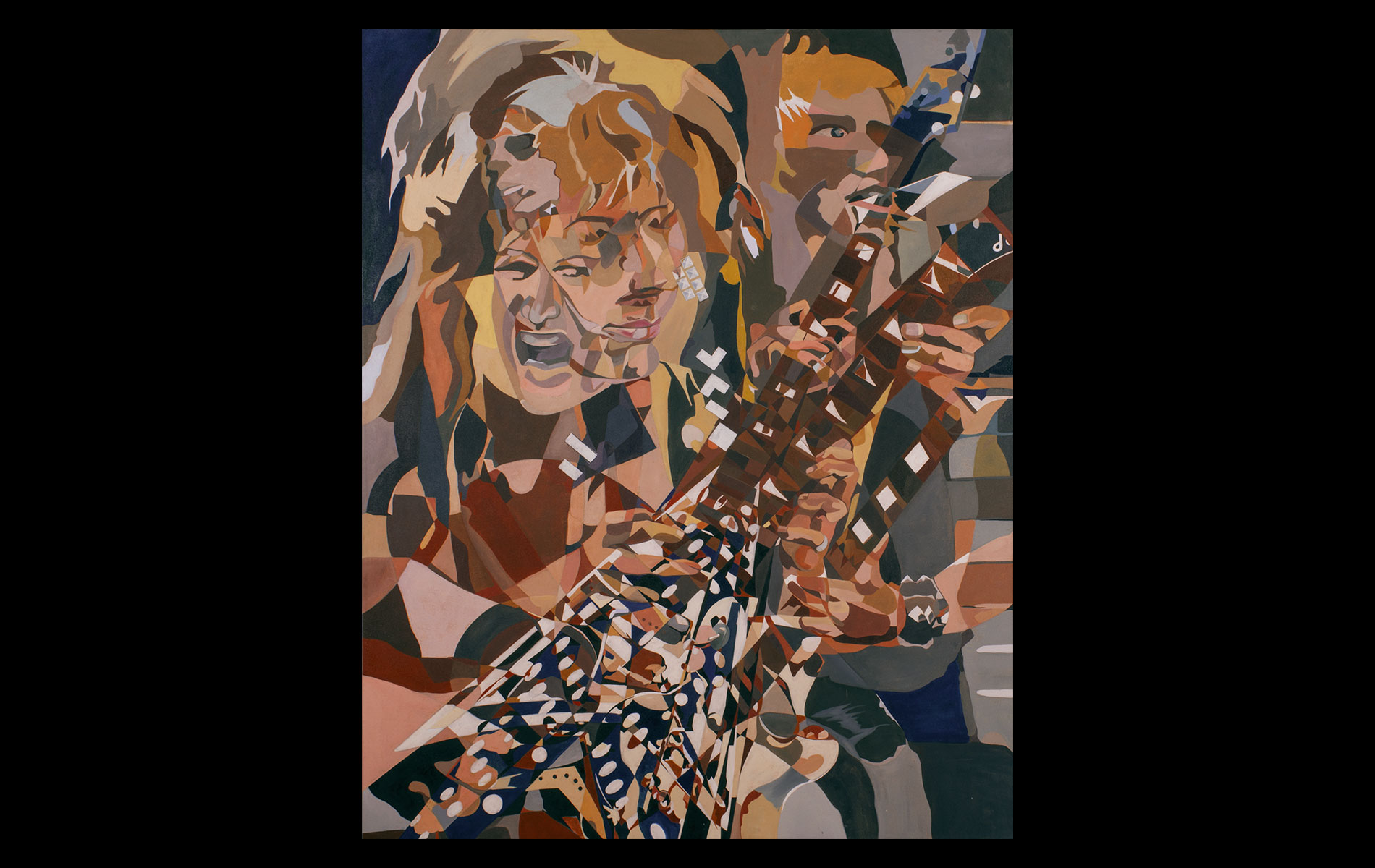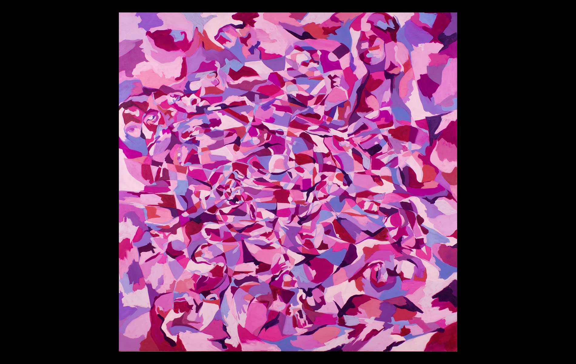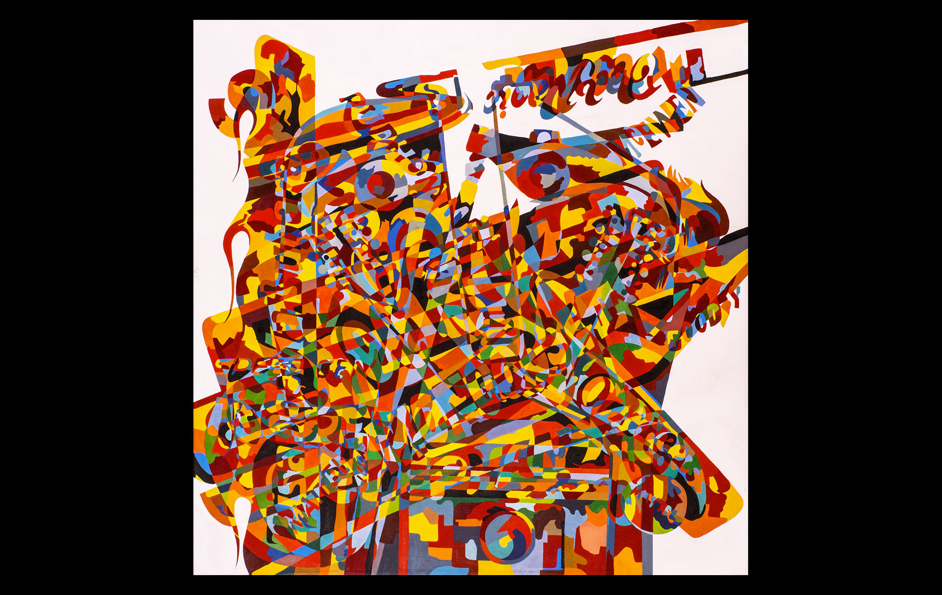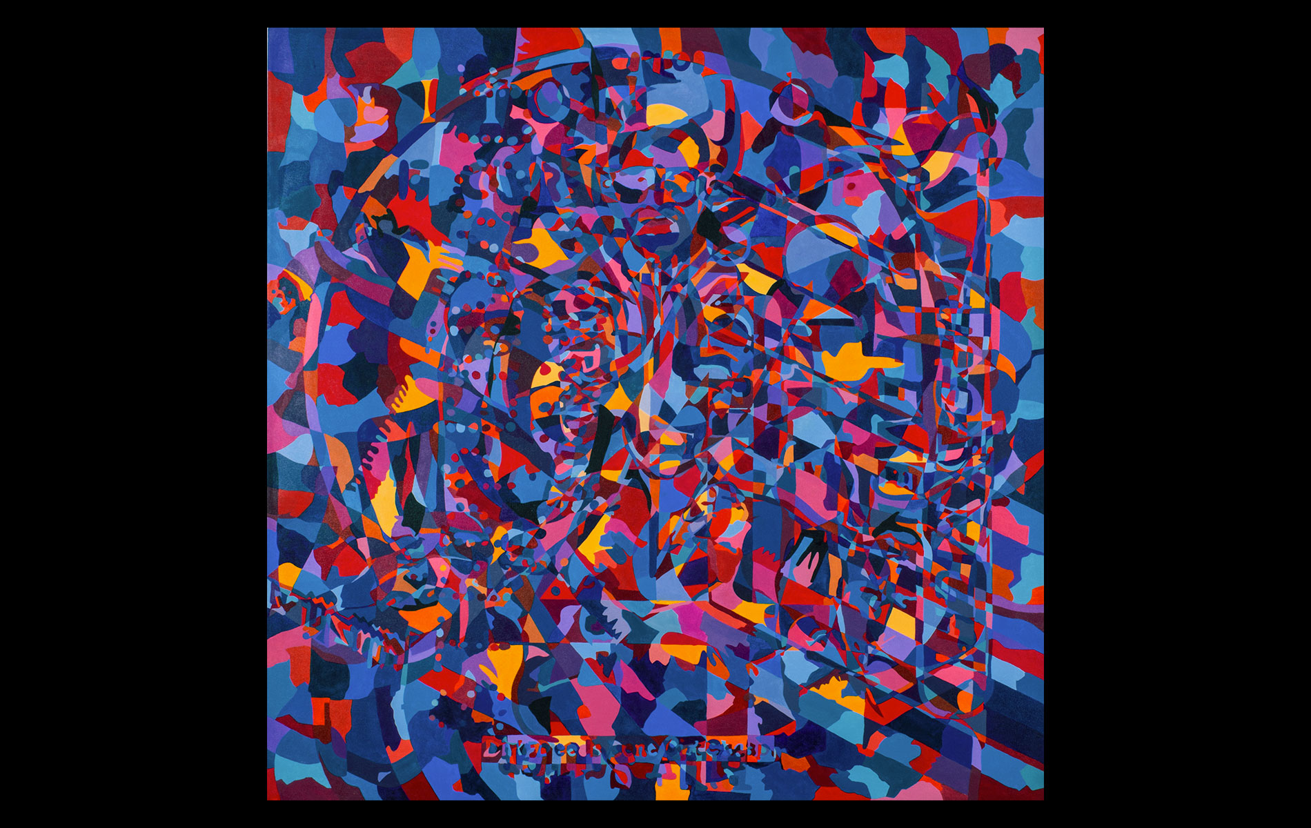 Uneventful childhood marked with sporadic bouts of non-conformity. A mutual agreement on behalf of the public school system led to over a decade of unfocused study amongst the academia of many universities. After receiving several degrees (Fine Art Painting, Art History and Computer Science) and completing requirements for many additional, he was forced into the outside world. That world involved several years of blind groping for a methodology that allowed an application of aesthetic skills while introducing complex literary and political ideas and experiences. Few levels of employment allow the freedom to create without restraint and some time was spent pursuing a state of compromise. Unfortunately, none was found satisfactory and the far too common life of the starving artist was accepted. Many mediums subjects and styles were attempted while striving for a evermore loose and expressive style. It wasn’t until realizing the futility of fighting his strengths and embracing the obsessive compulsive side, that a turning point was made. Since the epiphanal painting that coalesced the concept of “Contiguous Fractured Abstraction” it has been a struggle to prevent the temporal commitment from overwhelming the passion of intent. Due to the complexity of the work and the techniques involved, 4-6 months commitment is typical , while larger pieces can take as long as a year or more.